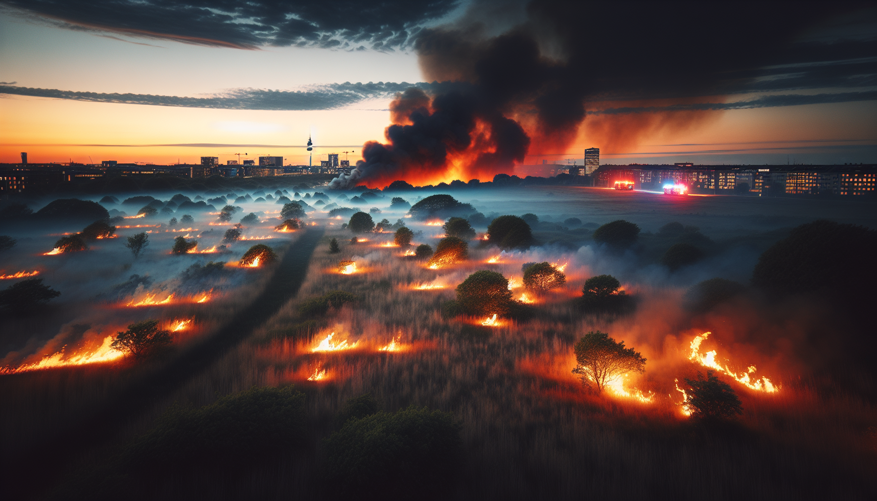 A nature fire broke out at Amager Fælled in Copenhagen on April 18, 2025. The blaze covered 200-300 square meters of grassland. Copenhagen Fire Department got it under control by 8:36 PM, though black smoke was visible across Amager. No injuries were reported. Not their first rodeo—a much larger fire scorched the area in 2024.