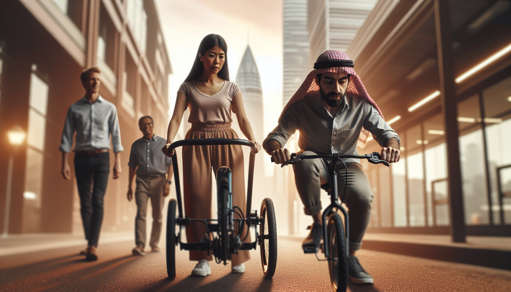 Adults who never learned to cycle are now seeking this skill to improve job prospects. Among them is Helai Anwari, a home care worker currently using a heavy tricycle on her daily route. She hopes to upgrade to a normal bicycle and eventually an electric bike to make her work easier.